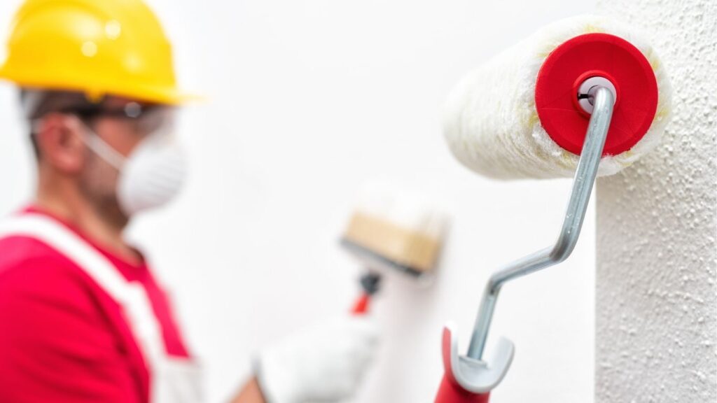 8. ثم نبدأ بالصبغ من خلال رسم الحواف والزوايا باستخدام الفرشاة، ثم يتم استخدام الرولر لتطبيق الدهانات على الجدران والأسطح الكبيرة بالتساوي.